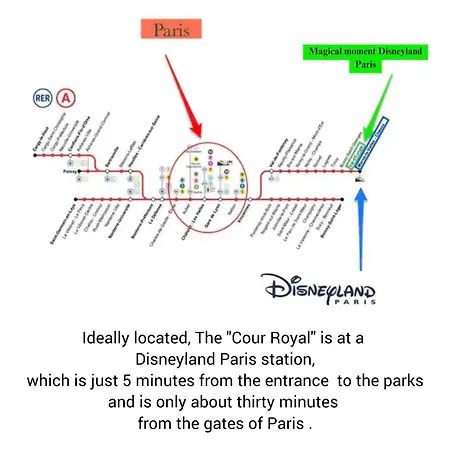 Disneyland Resort Paris ligger i en afstand af 2 km, mens Buffalo Bill's Wild West Show er 1 km væk. En 30-minutters gåtur fører dig til byens centrum. Gæster kan prøve japanske måltider i sushi bar OXO Bistrot placeret 200 meter væk. Du kan komme til Val d'Europe om et par minutter i bil.